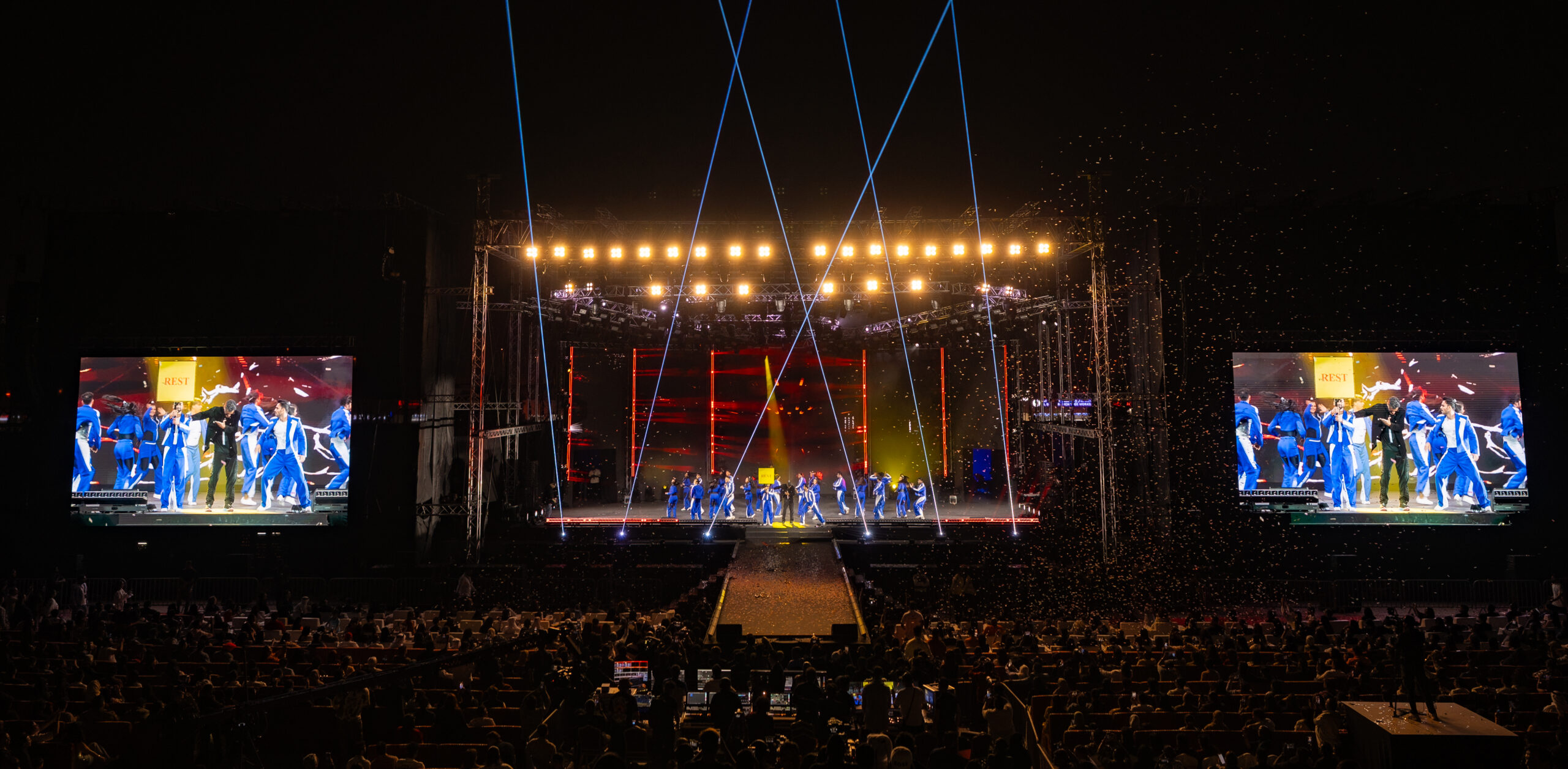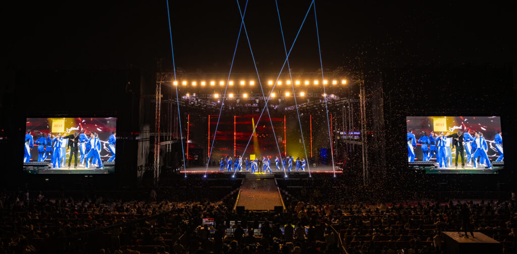 We transformed the Asian Town Amphitheatre into a high-energy arena through a custom-built, multi-level stage design and cutting-edge synchronized lighting. Our production team crafted an immersive “concert vibe” by blending pyrotechnics and massive LED backdrops with crystal-clear stadium acoustics to match the star power on stage. This case study showcases how we maintained a seamless, electric atmosphere while managing the technical complexities of a world-class Bollywood touring production.