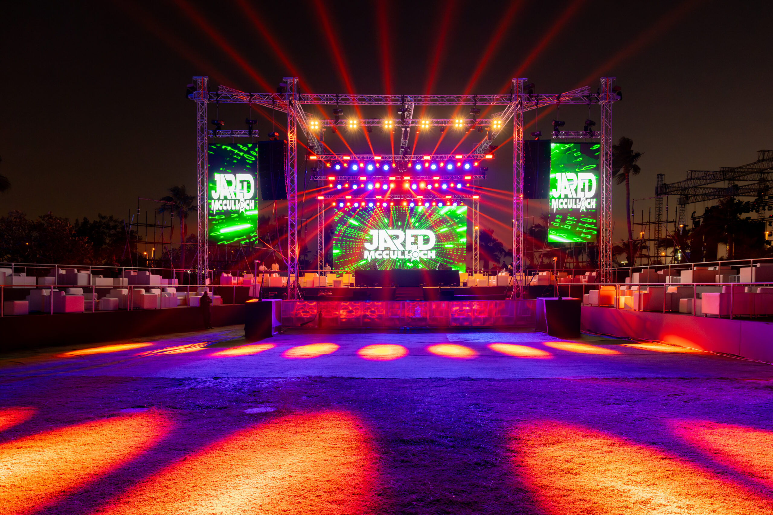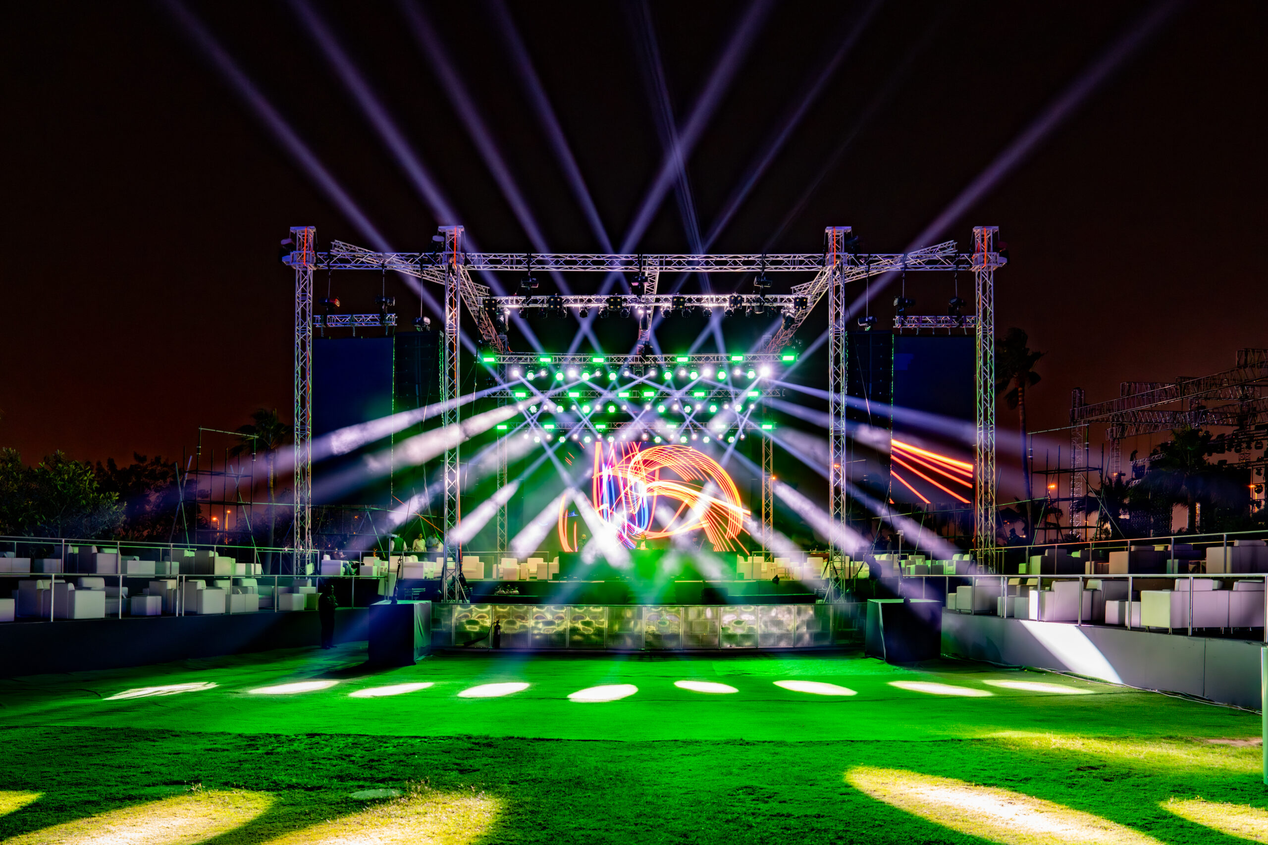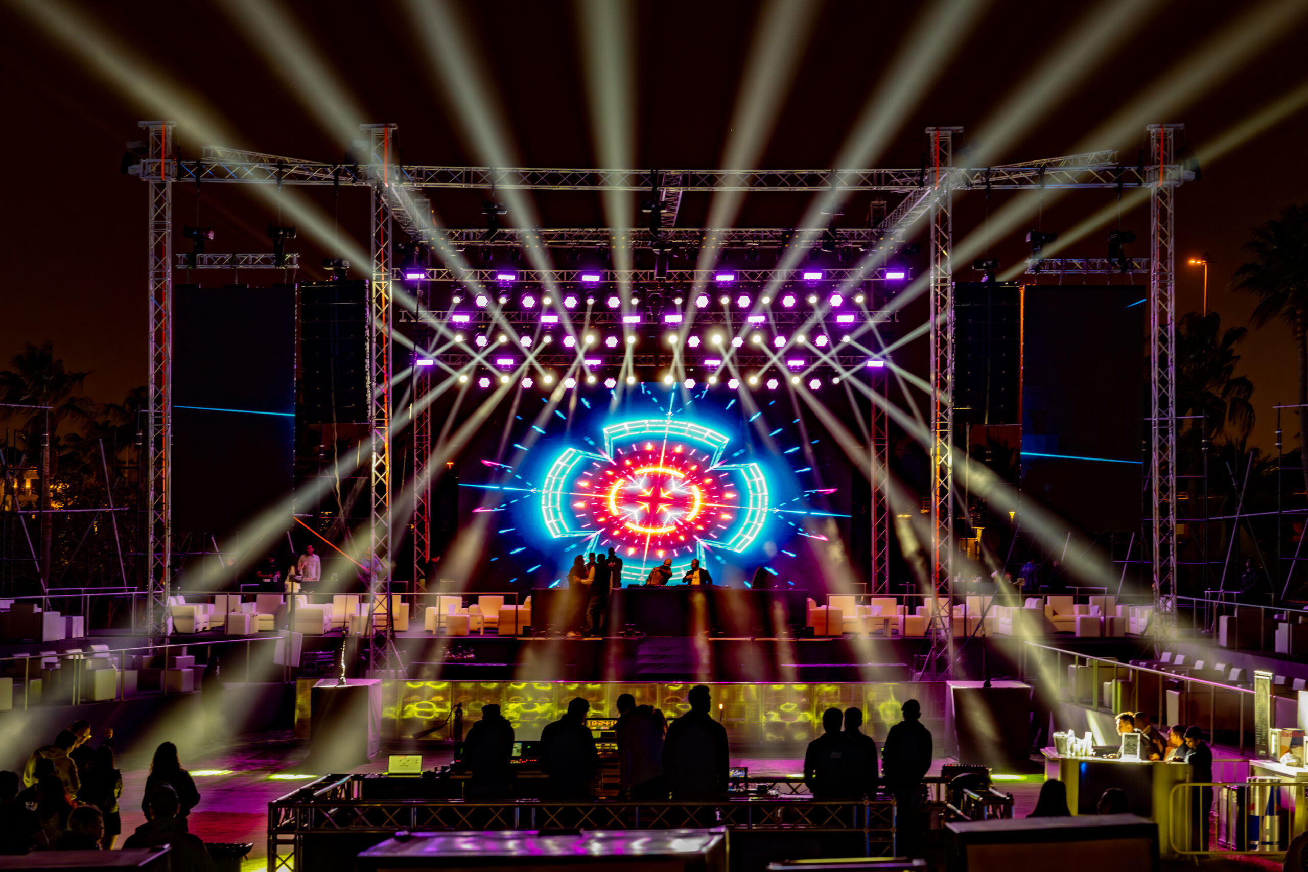 We transformed the Garden of Doha Golf Club into a world-class open-air arena, featuring a large-scale stage design integrated with high-performance AV and synchronized lighting. Our production team managed the complete event flow for thousands of attendees, coordinating a high-energy technical setup that included precision sound engineering and immersive visual effects to match Lost Frequencies’ signature melodic house sets. From the complex logistics of the backstage teams, to the seamless entry management of a large-scale crowd, we delivered a premium, festival-grade experience under the stars.